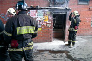 Под эстакадой в одной из торговых палаток, предназначенных под снос, произошло возгорание в щитке.
