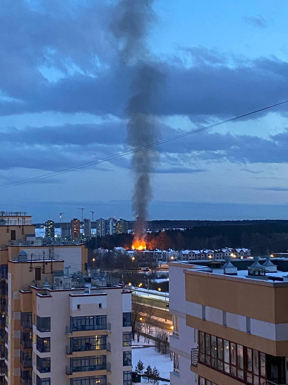 Пожар произошел вечером в среду, 30 марта. Судя по фотографиям и видеоматериалам, опубликованным очевидцами в телеграм-канале жителей 23 микрорайона «ЖК Зеленый бор», сгорел одноэтажный деревянный дом, располагавшийся рядом с недостроенными коттеджами поселка «Кутузовская слобода» (посмотреть на карте).