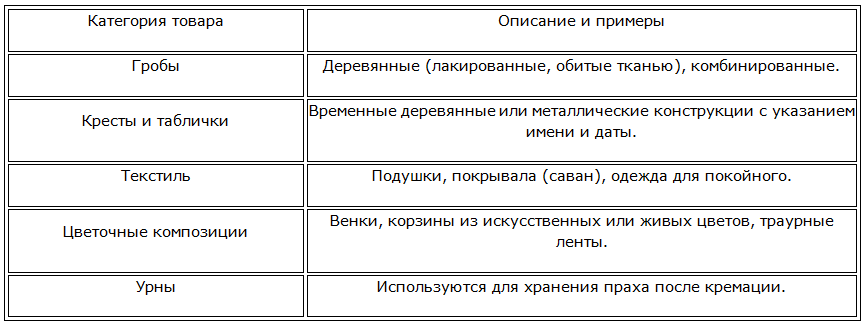 Похоронные принадлежности и товары