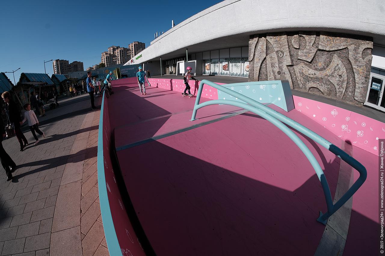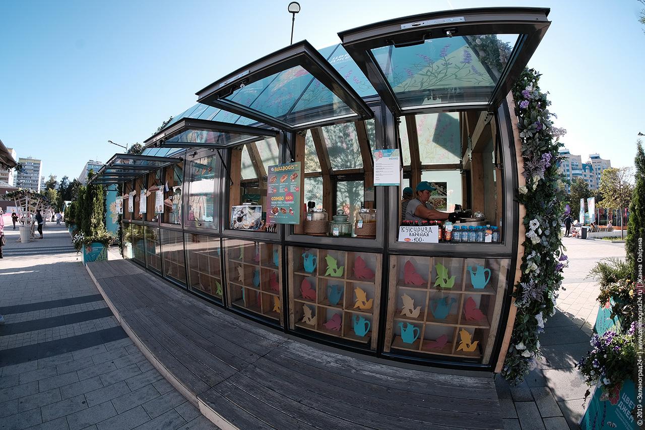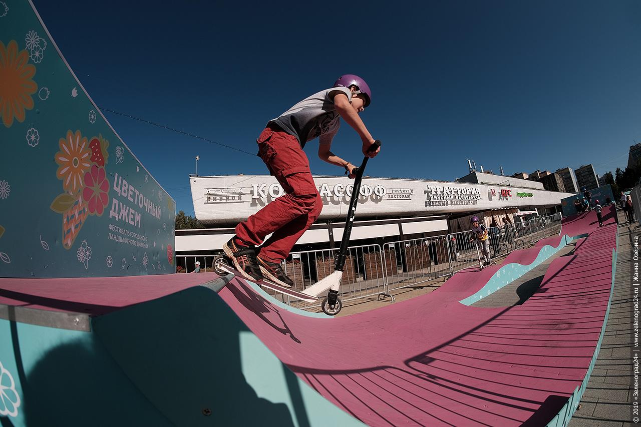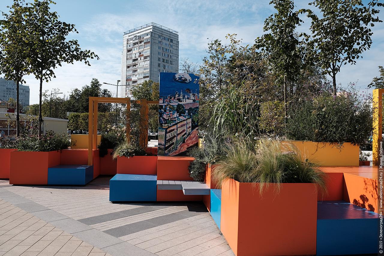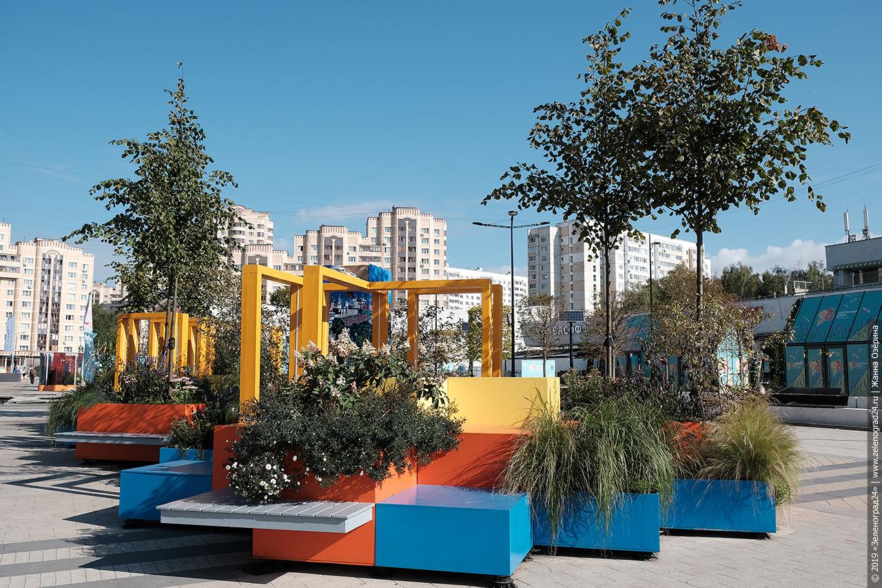 Площадь Юности начали украшать еще в мае. Главным объектом зеленоградской площадки стал летний сад Kandin-Skyline итальянского ландшафтного дизайнера Катюши Ратто, представленный в категории «Средний выставочный сад» конкурсной программы фестиваля.