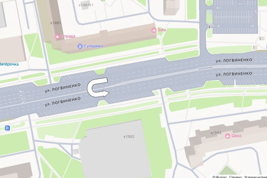 На улице Логвиненко в Зеленограде организован разворот при движении в сторону улицы Андреевка.